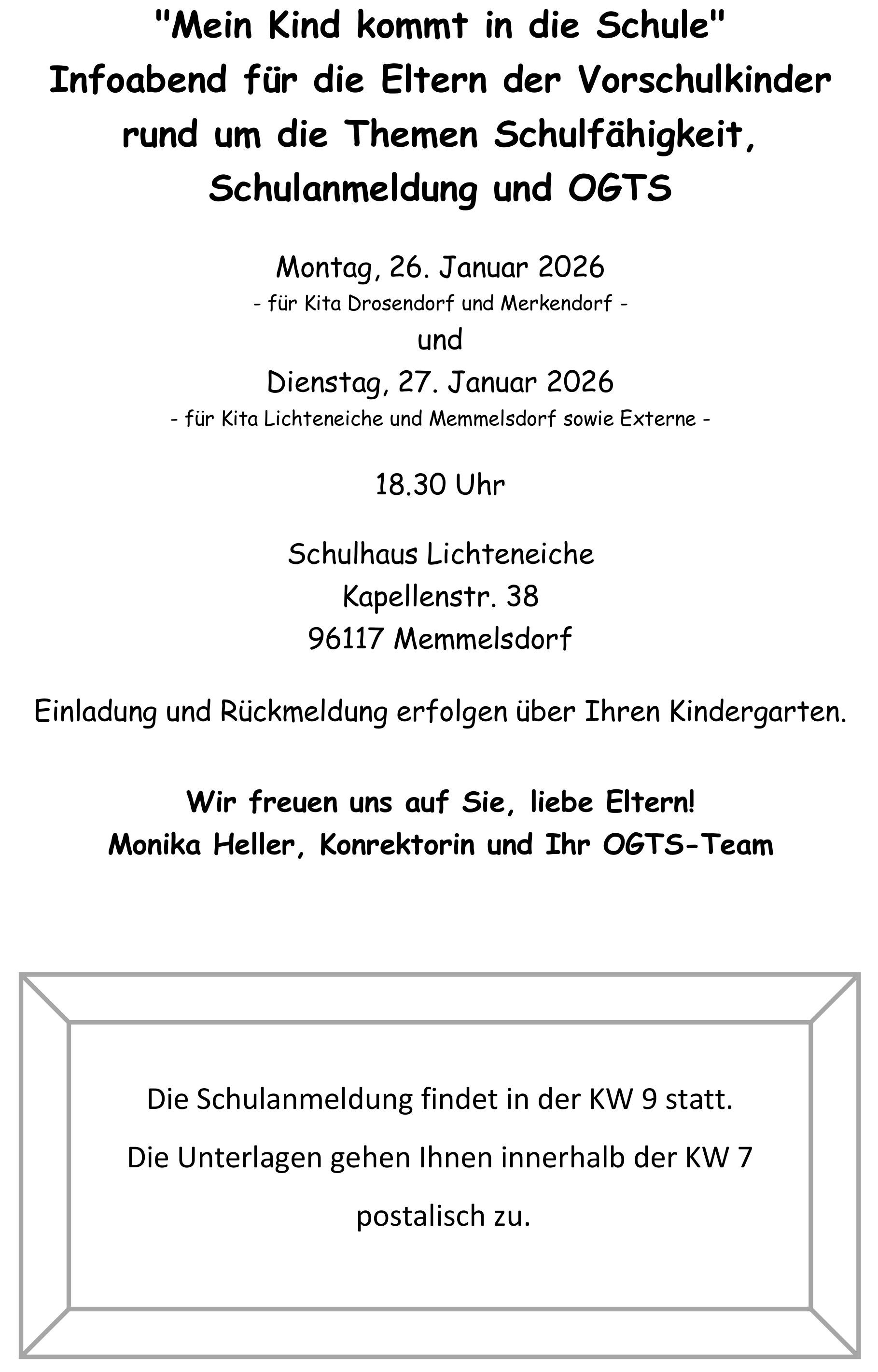 Einladung zum Infoabend für Eltern der Vorschulkinder am 26./27. Januar 2026